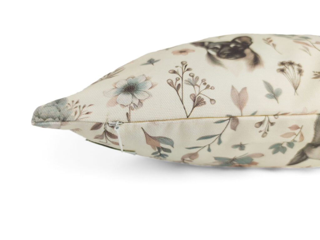 Mit seiner Größe von 40 x 40 cm passt dieser Bezug auf die gängigen Kissenformate und fügt sich mühelos in deine bestehende Wohnlandschaft ein. Ob als einzelner Blickfang oder in Kombination mit anderen Kissen – das liebevoll gestaltete Muster ‚Hundeglück‘ in Cremeweiß bringt Freude, Wärme und ein Gefühl von Vertrautheit in Ihr Zuhause.