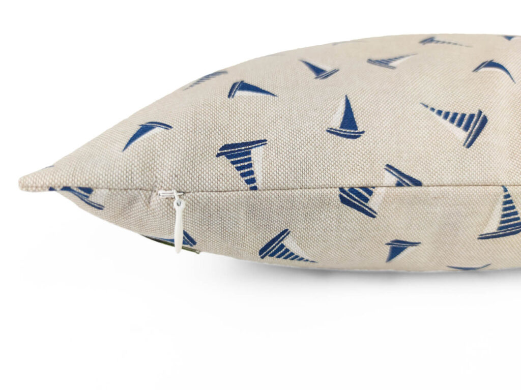 Mit seiner Größe von 40 x 40 cm passt dieser Bezug auf die gängigen Kissenformate und fügt sich mühelos in deine bestehende Wohnlandschaft ein. Ob als einzelner Blickfang oder in Kombination mit anderen Kissen – das maritime Muster mit kleinen Segelbooten setzt stilvolle Akzente und bringt eine dezente, beruhigende Eleganz in Ihr Zuhause