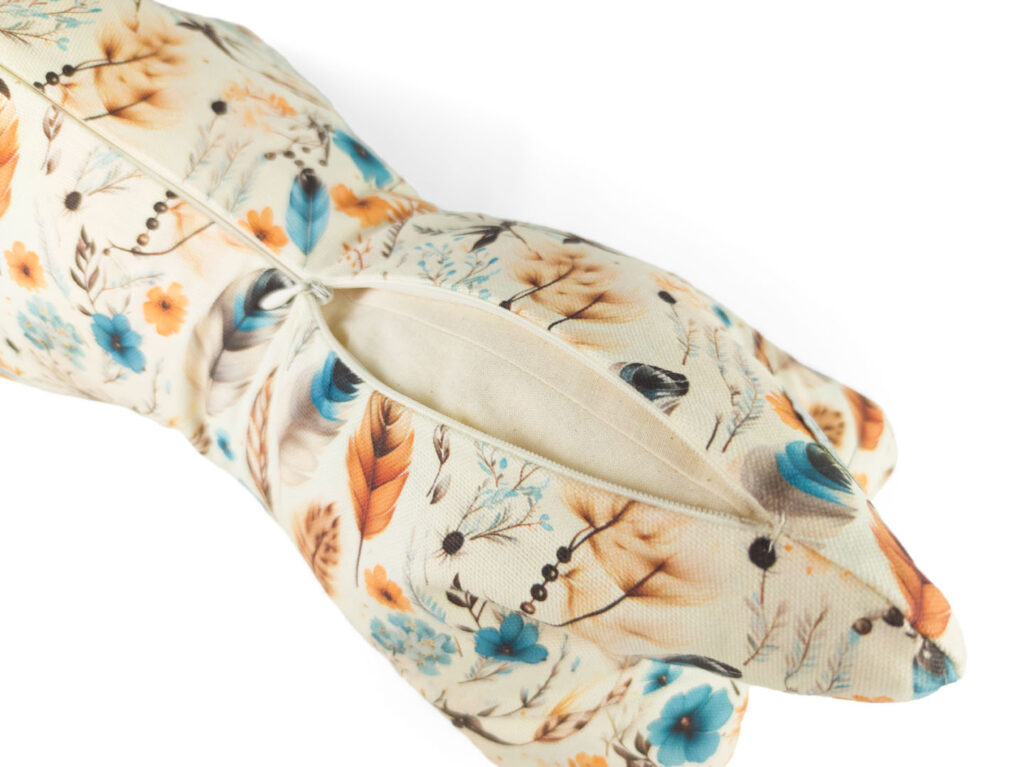 Gönn deinem Leseknochen eine elegante Verwandlung und bringe mit dem Leseknochenbezug – Federtraum türkis-orange eine frische, stilvolle Note in dein Zuhause.
