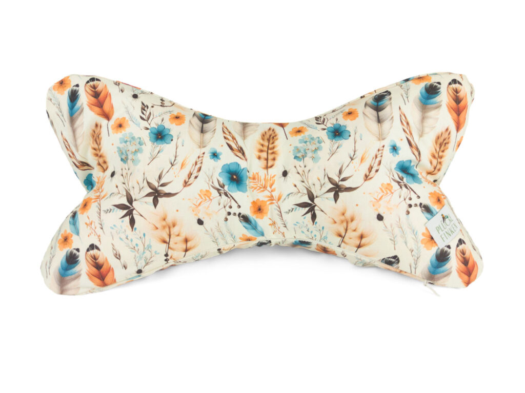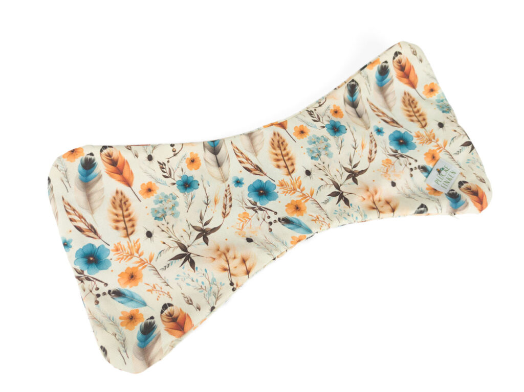Ein Hauch von Leichtigkeit und Poesie: Zarte Federn, feine Blüten und filigrane Gräser tanzen über den cremeweißen Hintergrund und verleihen diesem Leseknochen eine verträumt-romantische Ausstrahlung. In harmonischen Nuancen von Türkis, Orange, Hellgrau und rötlichem Braun gestaltet, entsteht ein Spiel aus Farben, Formen und Fantasie – luftig, inspiriert und ausdrucksstark zugleich.