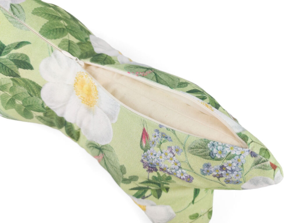 Gönn deinem Leseknochen eine elegante Verwandlung und bringe mit dem Leseknochenbezug – Wildrosen weißgrün eine frische, stilvolle Note in dein Zuhause.